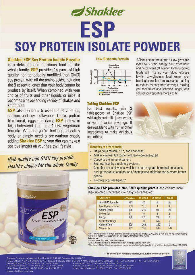 Serbuk ESP Shaklee merupakan sumber protein soya yang terbaik. ESP
