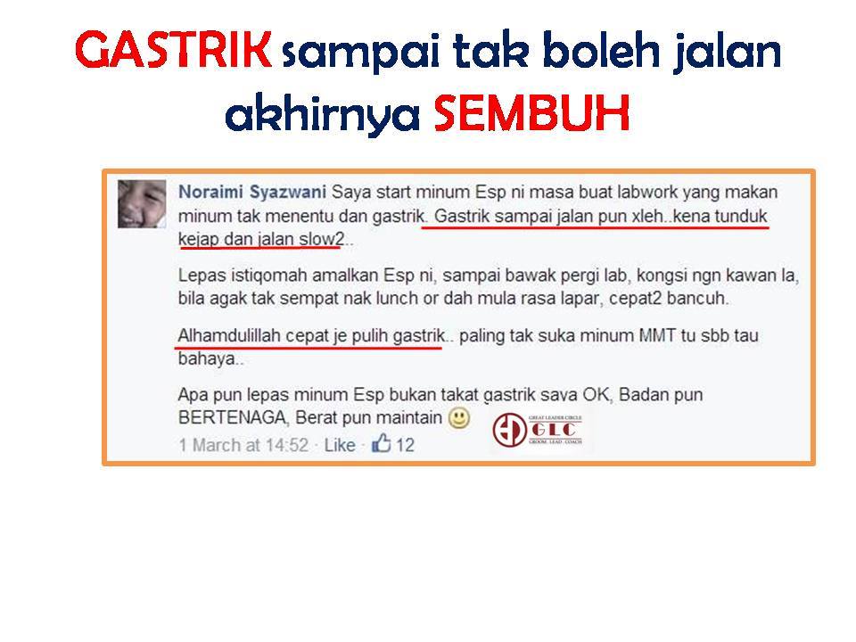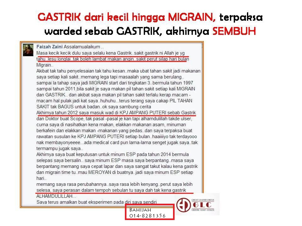 Nampak tak apa rasionalnya…Anda tak perlu ragu untuk mencuba ESP..Bukan sahaja masalah gastrik dapat diatasi, nak kulit cantik, nak kurus pun boleh In Sha Allah.