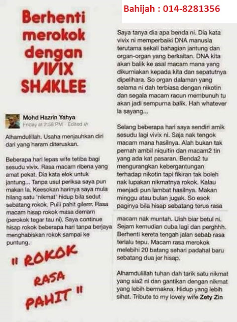 Kini jangan risau, Shaklee ada solusinya. Vivix Buang Ketagihan Merokok.